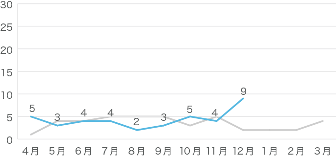 昨年のデータはグレーの線で示しています。